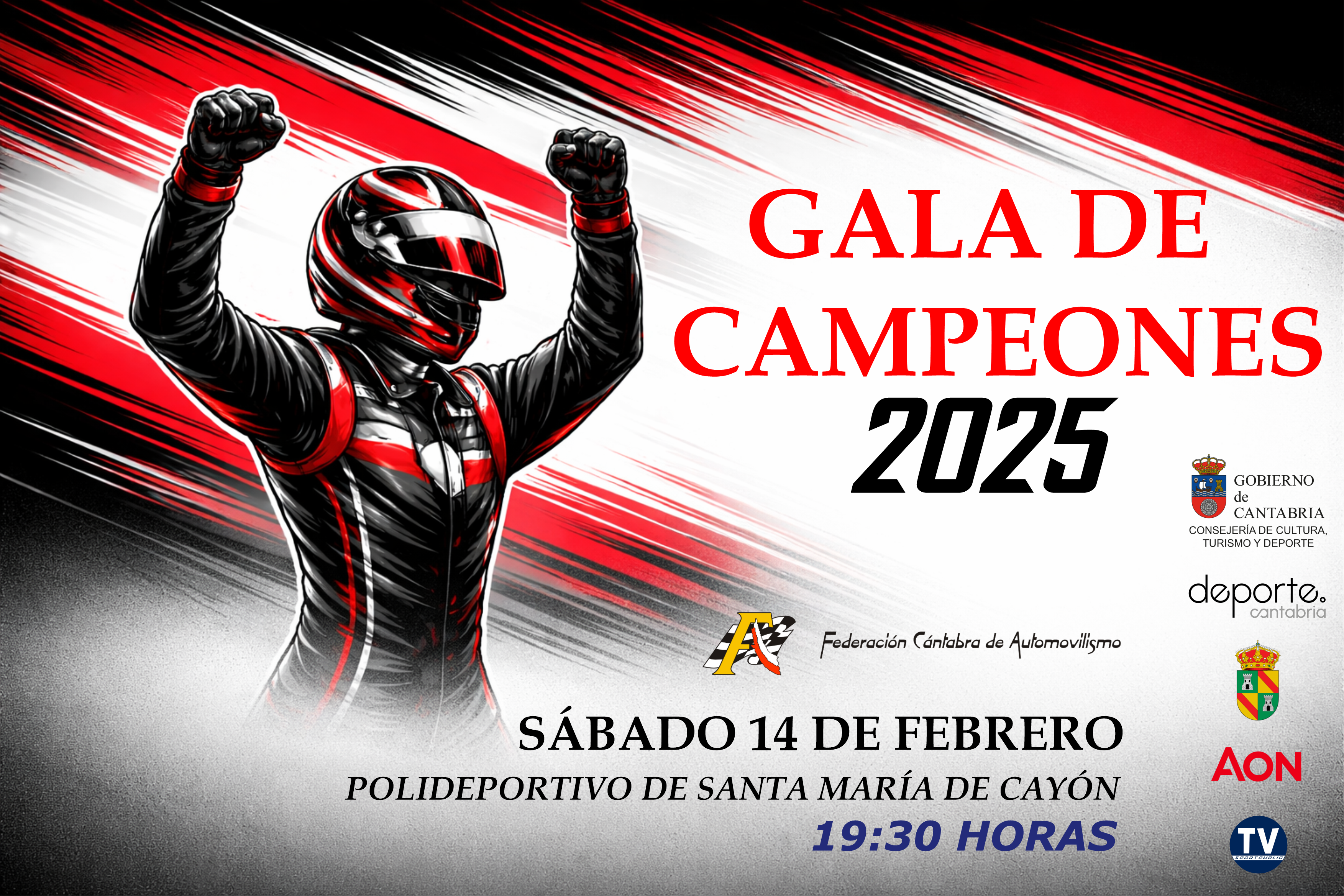 Como ya se publico hace varios días, la Gala de Campeones de la Federación Cántabra de Automovilismo se celebrará el próximo sábado 14 de febrero en el Polideportivo de Santa María de Cayón, a partir de las 19:30h. Los diferentes deportistas y escuderías recibirán sus galardones como reconocimiento al esfuerzo, la constancia y los logros alcanzados durante el año.