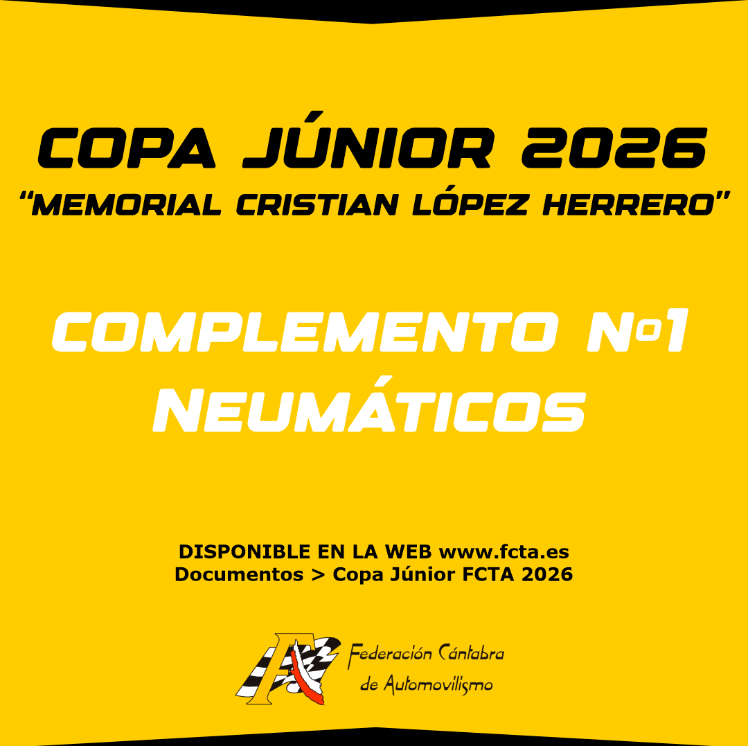 La Federación Cántabra de Automovilismo publica el Complemento Nº1 al Reglamento Deportivo de la Copa Junior 2026 “Memorial Cristian López Herrero”, relativo al Artículo 11 – Neumáticos.