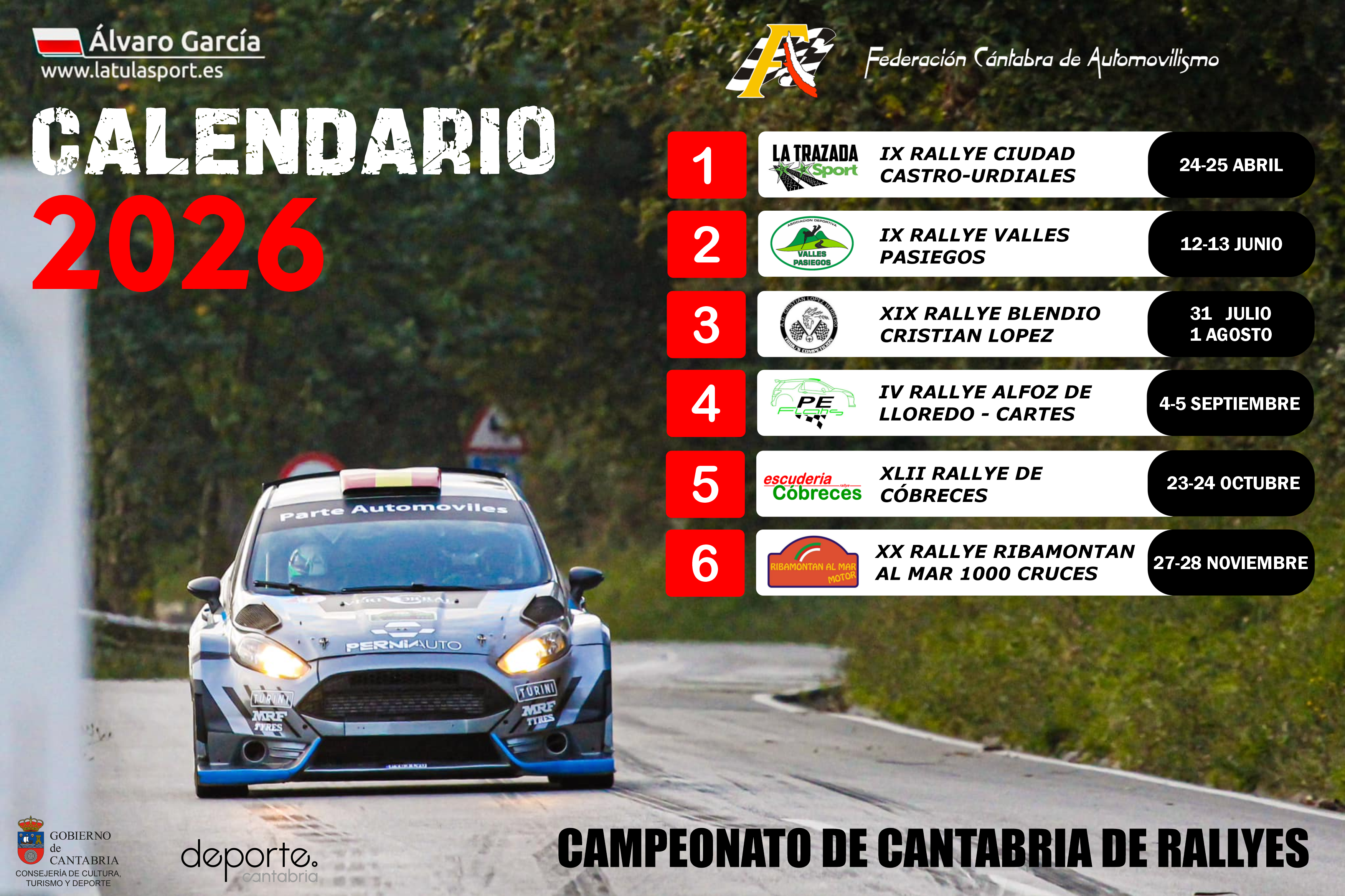 Un total de 6 pruebas formarán el Campeonato de Cantabria de Rallyes para la temporada 2026.
